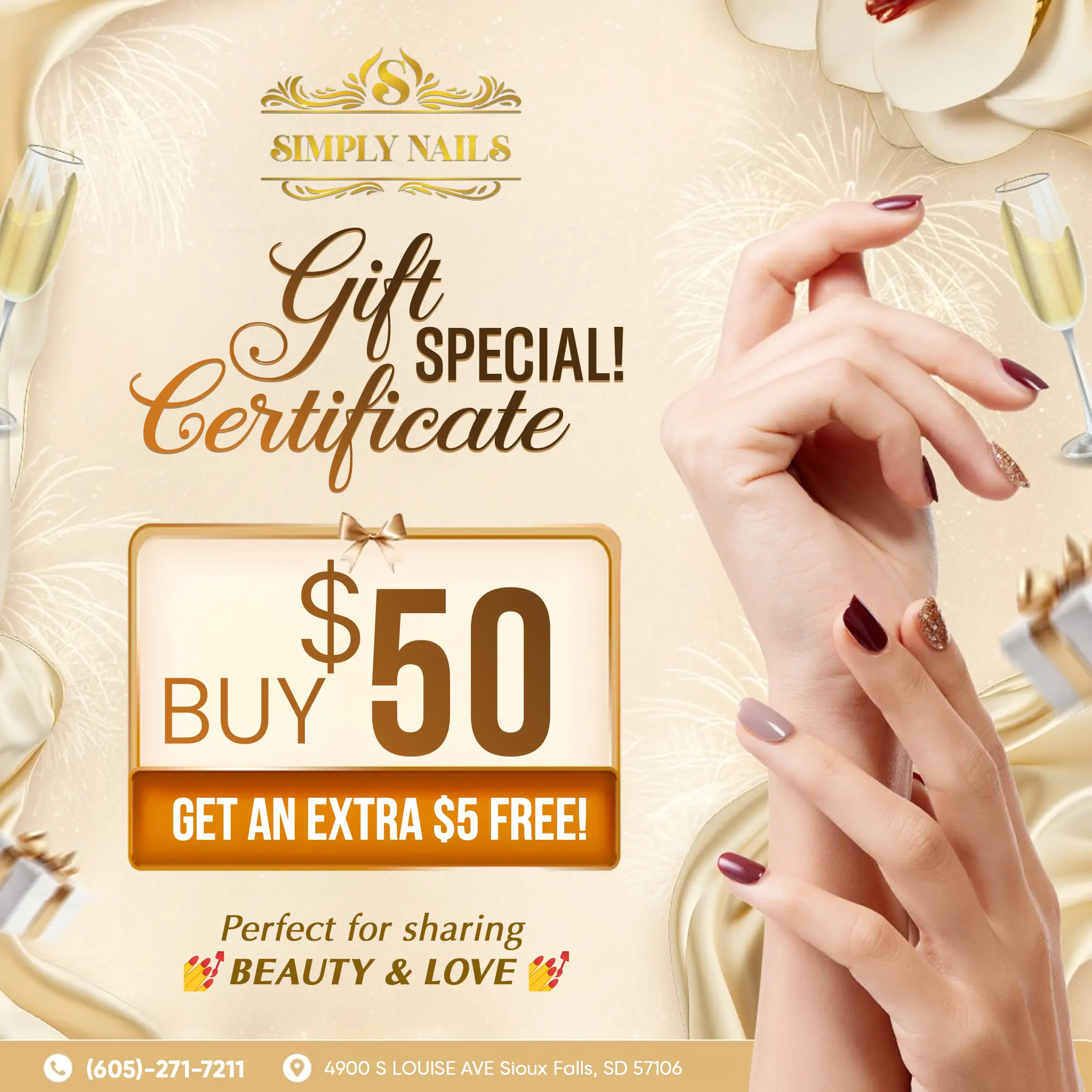 Visit SIMPLY NAILS at 4900 S LOUISE AVE, Sioux Falls, SD 57106 to experience 5-star nail service at a reasonable price!